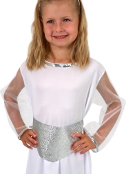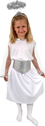 Le déguisement enfant Ange avec auréole et ceinture est un choix parfait pour le carnaval ou les fêtes à thème. Le costume comprend une auréole, une ceinture et une robe. Il est conçu dans des tons argentés et blancs, apportant une impression de pureté et d’élégance.