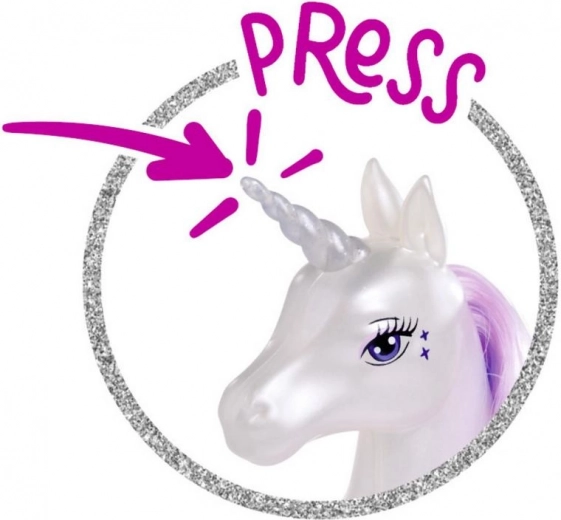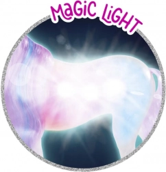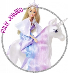 Découvrez le monde fantastique avec la poupée Steffi, vêtue de sa robe de princesse magique, idéale pour chaque conte de fées. Son fidèle compagnon, la licorne, ne charme pas seulement grâce à sa fonction lumineuse, mais permet aussi de créer différentes coiffures grâce à sa longue crinière.