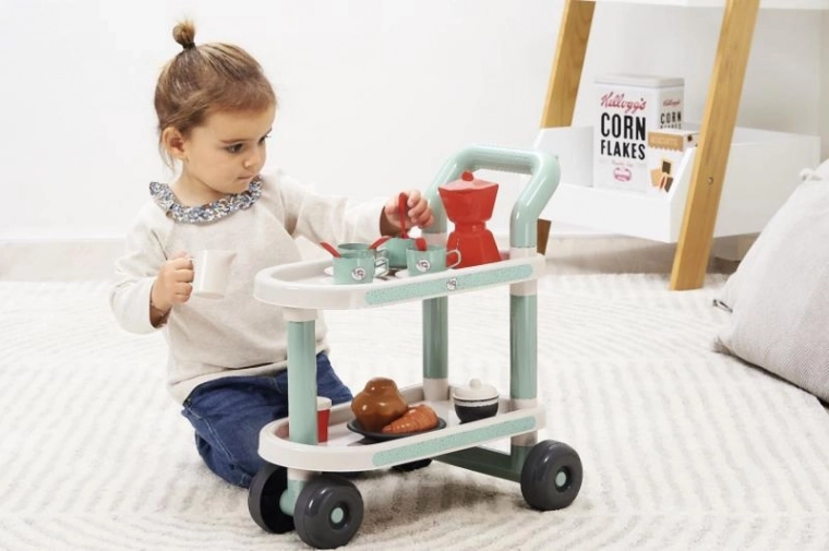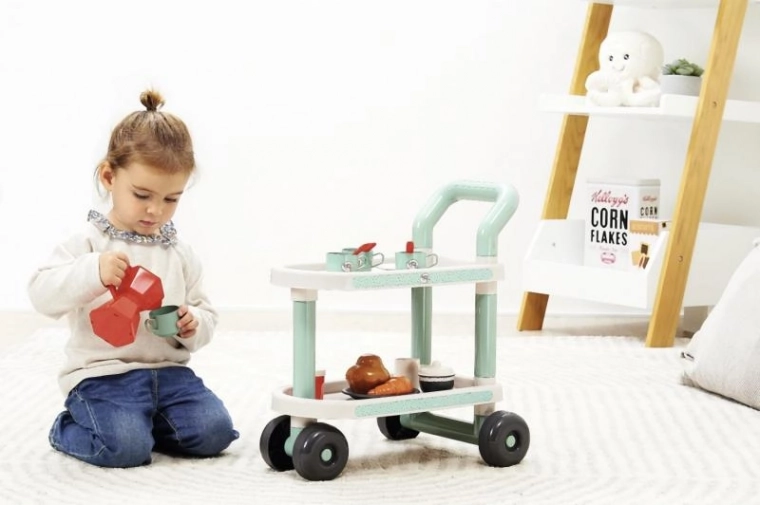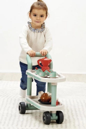 Nous vous présentons le chariot à petit-déjeuner avec accessoires, idéal pour les petits baristas et boulangers. Cet ensemble contient un total de 22 pièces, fournissant tout le nécessaire pour une collation matinale parfaite. Le chariot est sur roulettes, assurant une facilité de déplacement dans la chambre ou le jardin.