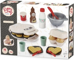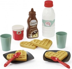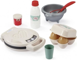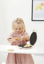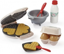 Ce gaufrier est idéal pour les enfants qui veulent expérimenter la pâtisserie. Le set comprend tout ce qu'il faut pour préparer de délicieuses gaufres. Le gaufrier, dont les dimensions sont 21 x 17 x 5 cm, est livré avec plusieurs accessoires. Vous pouvez choisir entre la préparation de gaufres à la confiture ou avec un glaçage au chocolat. L'ensemble comprend également de la vaisselle pour deux, des œufs, du lait et un bol avec un fouet.