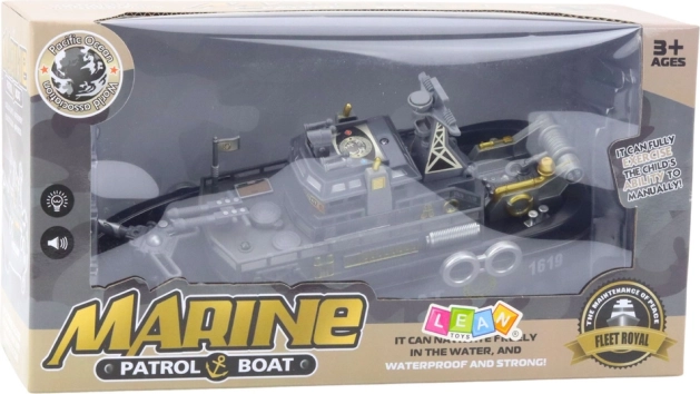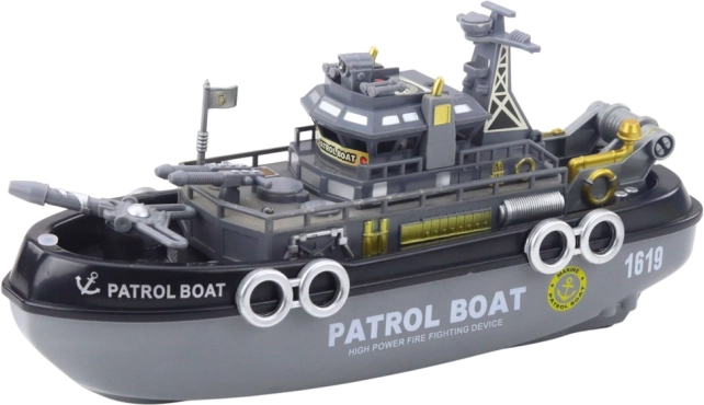 Vedette de patrouille avec éclairage et sons pour enfants. Design réaliste, possibilités de jeu sur terre et dans l’eau. Parfait pour les petits capitaines.