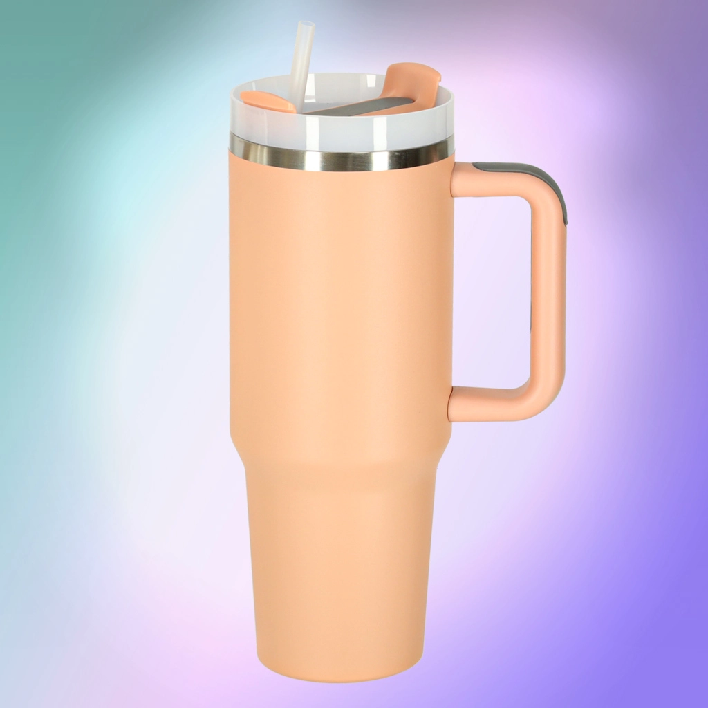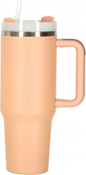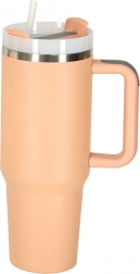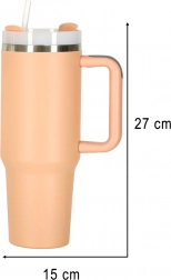 Grand mug isotherme avec paille et poignée 1,2 L rose poudré