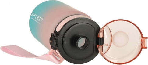 Bouteille de sport en coloris rose et bleu, l’alliée idéale pour vos activités quotidiennes. Grâce à son embout et son couvercle, vous pouvez boire facilement en mouvement sans craindre les fuites.