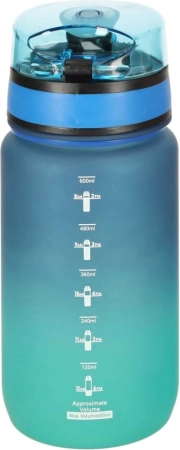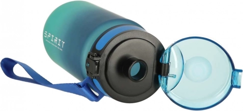 Gourde de sport avec embout 600 ml bleu-vert, idéale pour les sportifs, avec ouverture pratique et poignée confortable.