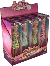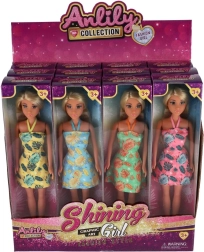 Au choix, 4 variantes de couleurs avec des imprimés marqués de feuilles et de fleurs. Un maquillage finement détaillé, une chevelure de qualité et des chaussures blanches assorties soulignent l’élégance de la poupée. La hauteur de 30 cm est compatible avec une large gamme d’accessoires Anlily, pour développer des scénarios mode comme vacances.