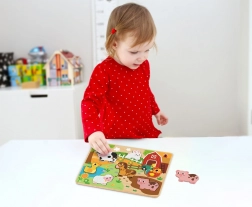 Plongez dans une belle journée paisible à la ferme avec notre puzzle à encastrer. Le produit se compose d'une base et de sept pièces amovibles, permettant aux enfants d'exercer leurs compétences sensorielles et leur motricité fine. Les enfants apprennent la patience tout en découvrant la diversité des amis animaux.