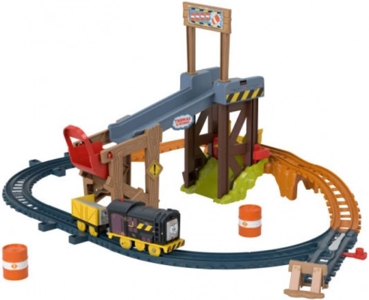 Set de jeu sur le thème du chargement avec des personnages de Thomas et ses amis : la locomotive à piles Diesel et un wagon. Actionnez l’interrupteur sur le toit de Diesel pour le faire partir sur la voie, où il pourra charger des tonneaux et les transporter de nouveau jusqu’à l’ascenseur et la rampe.