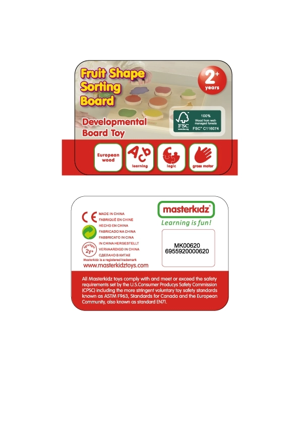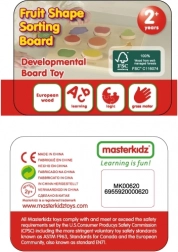 Le Trieur de formes Fruits Colorés de Masterkidz est un excellent jouet en bois pour enfants aux multiples usages. Il ne procure pas seulement du plaisir, il permet aussi d’apprendre les noms des fruits et d’encourager leur consommation. L’enfant doit associer chaque fruit aux ouvertures correspondantes sur la planche en bois, ce qui exige concentration et analyse des formes. Cette activité contribue également au développement des capacités de coordination.