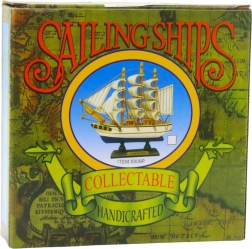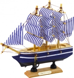 Ce modèle de voilier au style classique est idéal pour tous les admirateurs de l’esthétique maritime. Le gréement traditionnel à trois mâts aux rayures bleu et blanc et la coque bleu marine avec une bande blanche créent un effet visuel remarquable. Grâce à ses proportions harmonieuses et à sa finition manuelle, le modèle se distingue par des détails délicats et une apparence élégante.