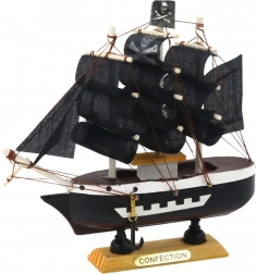 Le monde des pirates prend vie chez vous avec cette maquette décorative de navire pirate. Petite mais riche en détails, elle rappelle les célèbres bâtiments corsaires de l’âge d’or de la piraterie. Avec sa construction à trois mâts, ses voiles noires et son drapeau orné d’une tête de mort, elle produit un effet dramatique.