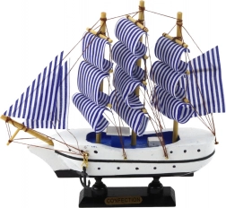 Ses voiles en textile à rayures bleu et blanc et son gréement soigné complètent son apparence de manière décorative et évoquent une brise marine fraîche. La base stable avec plaquette permet une installation facile sur toute surface.