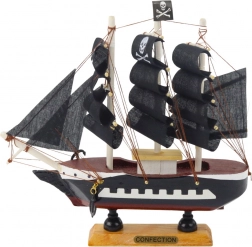 Cette maquette miniaturisée de navire pirate est fabriquée en bois et finie à la main avec un soin particulier pour la symétrie, les proportions et les détails réalistes tels que le gréement, l’ornement de poupe ou la tête de mort sur le mât. Elle est montée sur un socle stable avec une plaque descriptive, ce qui en fait une décoration idéale pour une bibliothèque, un bureau ou une collection personnelle. Grâce à son format compact, vous pouvez l’installer même dans un espace restreint, où elle apporte une touche d’aventure maritime et capte l’attention par son contraste de couleurs.