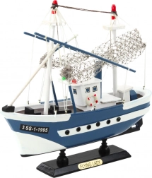 Le modèle de chalutier « Flying Lady » apporte une touche authentique des régions littorales à votre intérieur. Avec sa coque blanche et bleue caractéristique, sa cabine dotée d’un auvent réaliste et ses filets de pêche décoratifs, il constitue un accent décoratif élégant.