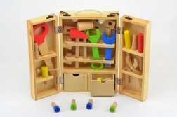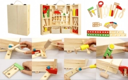 Boîte à outils en bois pour enfants dans une mallette pratique ! Un ensemble idéal pour les petits bricoleurs qui développe la motricité et la créativité.
