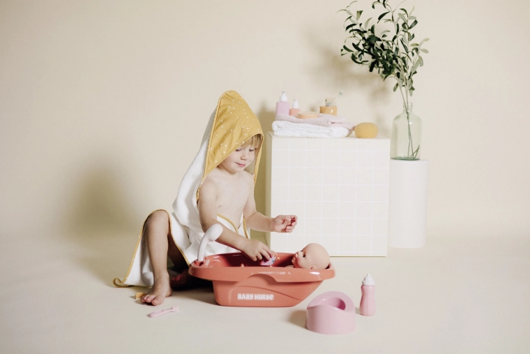 Le set inclut une large gamme d’accessoires : petit pot, thermomètre, brosse à dents, flacons et autres accessoires faciles à tenir pour les enfants. Fabriqué en France et utilisant des matériaux recyclés (76 %), c’est un choix écologique. Convient aux poupées jusqu’à 42 cm.