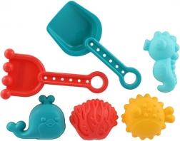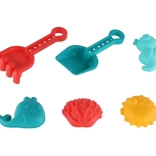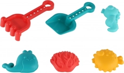 Le paquet contient tout ce dont les enfants ont besoin pour créer : une pelle pour ramasser, un râteau pour lisser et façonner, et des moules colorés pour des formes amusantes. Le set s’utilise au bac à sable, à la plage et même dans le bain.