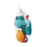 L’emballage en filet maintient le set ensemble, facilite le transport et permet un séchage rapide après le jeu.