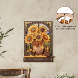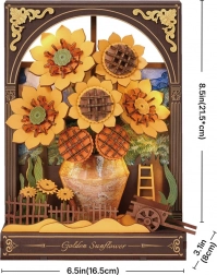 Puzzle 3D en bois Tournesols dorés offre une décoration féerique avec un éclairage LED doux pour un plaisir quotidien. Apporte une ambiance positive et du confort à votre intérieur.