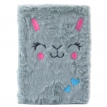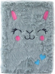 Le cahier en peluche avec un motif brodé de lapin gris est un produit charmant et utile qui attire immédiatement l'attention. La couverture douce en peluche d'un gris apaisant est ornée d'une broderie du visage d'un lapin avec des oreilles et des joues roses ainsi que deux petits cœurs bleus, ajoutant du charme et une joie enfantine au produit.