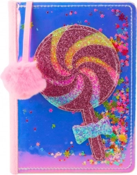 Carnet avec couverture holographique et sucette pailletée entourée de confettis mobiles assortis en forme et en couleur, à la fois remarquable et joyeux. La couverture avant attire l’attention grâce à sa surface holographique, tandis que l’arrière est agréable au toucher grâce à sa matière peluche.