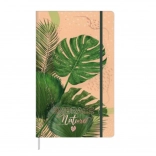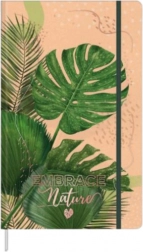 Élégant carnet au motif tropical de feuilles de Monstera, un excellent choix pour noter au quotidien pensées, tâches et plans. La couverture rigide beige et verte avec l’inscription « Embrace Nature » apporte une touche de style.