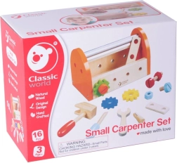 Un set créatif d’outils en bois pour petits réparateurs comprenant 16 pièces d’outils robustes dans une boîte en bois pratique. Favorise la motricité fine, la compréhension technique et l’habileté. Fabriqué en bois de qualité, idéal pour les enfants dès 3 ans.