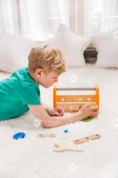 Ce set d’outils en bois ravira tous les petits bricoleurs qui aiment aider à la maison. Dans la solide boîte en bois, vous trouverez tout le nécessaire pour des “réparations” sûres et ludiques. Le jouet développe la coordination œil-main, stimule la créativité et initie les enfants aux bases des travaux manuels.