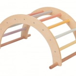 L’ensemble Pikler de 2Kids Toys inclut un triangle, une planche et un arc qui, ensemble, offrent d’innombrables possibilités pour les activités motrices des enfants. Le triangle et l’arc servent de structure d’escalade, tandis que l’arc peut, d’un simple retournement, se transformer en balançoire ludique. La planche peut faire office de passerelle entre les deux éléments ou, grâce aux prises fixées, de premier mur d’escalade d’entraînement.