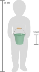 Les outils comprennent deux pelles et un râteau, idéaux pour planter, creuser ou construire des châteaux de sable. Le seau en métal est parfait pour transporter de l’eau, du sable ou de la terre. Les enfants peuvent emporter ce set partout — au jardin, au bac à sable ou à la plage.