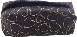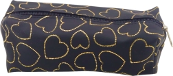 Trousse stylée et fonctionnelle en élégant coloris noir, ornée d’un délicat motif de cœurs dorés. Idéale pour les étudiants, écoliers et toute personne appréciant les accessoires pratiques au toucher mode. Grâce à ses dimensions de 20 x 8 x 6 cm, elle se glisse facilement dans un sac à dos, un cabas ou un tiroir de bureau. Le compartiment principal accueille toutes les fournitures d’écriture et sa fermeture éclair solide en garantit la sécurité.