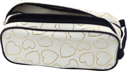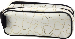 Cette trousse blanche ornée de cœurs dorés offre une excellente organisation grâce à deux espaces séparés pour ranger vos fournitures d’écriture. Vous pouvez y placer facilement non seulement des stylos et des crayons, mais aussi des règles, des gommes et des surligneurs. Des compartiments distincts assurent une meilleure visibilité et un rangement ordonné.