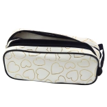 Fabriquée en matériau textile résistant avec un léger effet satiné et décorée de contours dorés. Des fermetures éclair solides garantissent la sécurité de vos affaires, tandis que la poignée latérale facilite le transport.