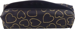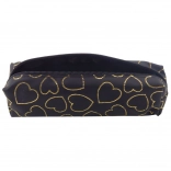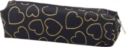 Trousse stylée et pratique de couleur noire avec petits cœurs dorés, idéale pour l’école, l’université ou le bureau. Son format compact et sa construction légère permettent de ranger facilement les fournitures essentielles.