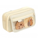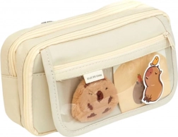 La trousse beige à motifs capybara est à la fois un organiseur fonctionnel et un charmant kit d’accessoires créatifs qui séduira chaque fan de papeterie. Elle dispose de deux compartiments spacieux, dont l’un est équipé de séparateurs en grille pour organiser facilement les fournitures d’écriture. À l’avant se trouvent deux poches extérieures, dont une transparente, idéale pour des décorations, badges ou cartes postales.
