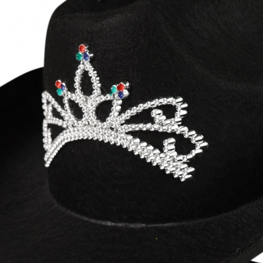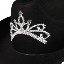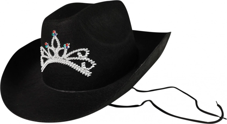 Élégant chapeau de cow-boy noir, parfait pour toutes les amatrices de style western. Il est décoré d’une couronne argentée bien visible, qui ajoute de l’attrait au chapeau. La hauteur du chapeau est de 14 cm, garantissant un port confortable. Le chapeau est destiné aux adultes. Avec ce chapeau, vous serez toujours au centre de l’attention, que ce soit au carnaval, à une fête à thème ou à un concert.