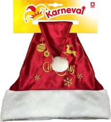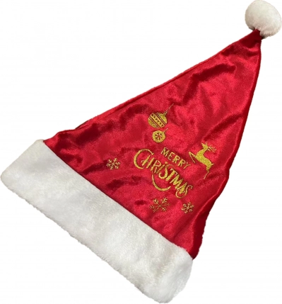 Ce bonnet de Noël élégant est un excellent accessoire pour toutes les occasions de fin d’année. Sa base rouge est ornée d’un imprimé décoratif doré qui attire le regard. Le pompon blanc au sommet apporte une touche traditionnelle.