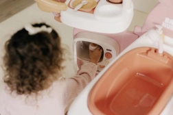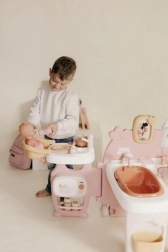 Ce centre de jeu unique propose trois zones de jeu — cuisine, salle de bain et chambre — offrant à votre enfant tout le nécessaire pour un jeu réaliste.