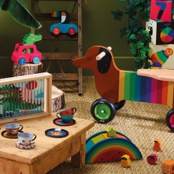 Le trotteur en bois Chien Coloré présente un design joyeux et coloré, que votre enfant adorera. Fabriqué en bois de qualité, ce trotteur offre une excellente stabilité et sécurité grâce à ses roues silencieuses, son système anti-basculement et l'angle de braquage limité du volant, réduisant ainsi le risque de blessure.