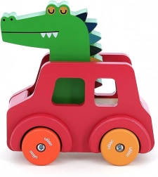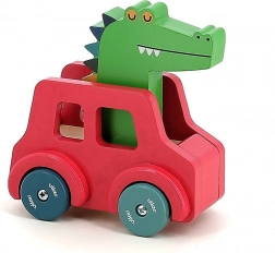La voiturette en bois de couleur rouge avec des roues colorées cache sous le crocodile un petit klaxon, qui s'active en appuyant sur sa tête. Ce mécanisme simple stimule la curiosité des tout-petits, fournissant un retour direct et une interaction. Grâce à sa forme ergonomique, ce jouet est idéal pour les jeunes enfants et aide à développer leur motricité fine, la coordination main-œil, et favorise la créativité et l'imagination.