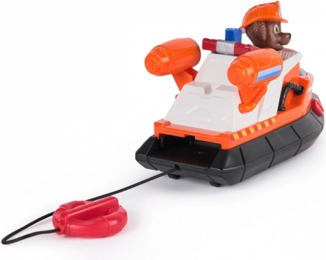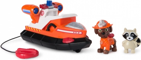 Zuma, de plus de 5 cm de haut dans sa tenue de pompier, est prêt à sauver la situation. Le bateau de pompiers est équipé d'une bouée de sauvetage reliée par une ligne, garantissant de nombreuses aventures pleines d'action. Zuma est accompagné d'un petit raton laveur à secourir. Les enfants peuvent appuyer sur le bouton pour lancer la bouée de sauvetage, dans laquelle le raton laveur s'insère parfaitement. Grâce au style original de la Pat' Patrouille, ce jouet ressemble exactement à celui de la série, inspirant les enfants à vivre des aventures.