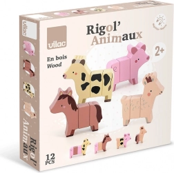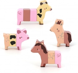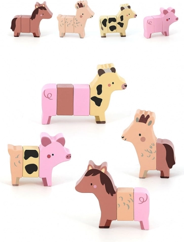 • 12 pièces, 4 animaux – vache, cheval, cochon, chèvre