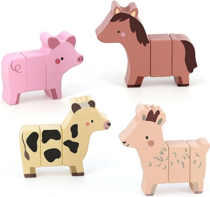 À quoi ressemblerait un petit cheval croisé avec un cochon ? Ou une chèvre avec un cheval ? Ce jeu magnétique en bois amusant permet aux enfants de créer leurs propres animaux, favorisant le jeu libre et développant la créativité. En assemblant, les enfants peuvent inventer des histoires et se familiariser avec différents animaux.