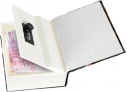 À l’intérieur se trouve une boîte métallique avec un cadenas à code (code initial : 000) qui protège de manière fiable les économies ainsi que les petits objets précieux. La tirelire possède une fente pour insérer pièces et billets sans avoir à ouvrir tout le coffret.