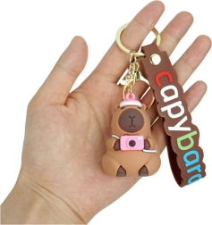 Le porte-clés représente une capybara sympathique portant un bonnet et un appareil photo rose, soigneusement fabriquée en silicone souple, élastique et résistant. Le matériau est agréable au toucher et résiste à un usage quotidien. Il est complété par une breloque élastique facilement attachable avec l’inscription colorée « capybara », un mousqueton robuste et un anneau classique. Grâce à cela, le porte-clés est fonctionnel et simple à fixer.