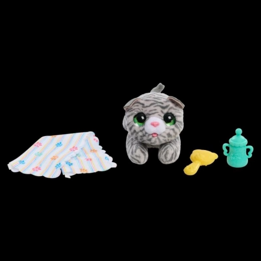 FurReal Nouveau-Né Peluche Chaton est un adorable animal interactif que vous allez adorer! Prendre soin de lui est un plaisir, nourrissez-le avec un biberon, apaisez-le avec une tétine ou bercez-le dans vos bras.