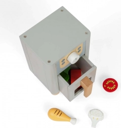 Friteuse à air en bois de Bigjigs Toys permettant aux enfants de découvrir la joie de cuisiner. Elle est équipée d’un bouton rotatif pour régler la température, d’un tiroir de rangement et de cinq aliments en bois. Idéale pour développer la motricité fine et la créativité.