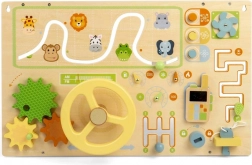 La planche est fabriquée en bois de première qualité certifié FSC et peinte avec des peintures et vernis non toxiques. Elle est conforme aux normes de sécurité européennes en vigueur. Les motifs safari et les couleurs vives stimulent la perception sensorielle des enfants.