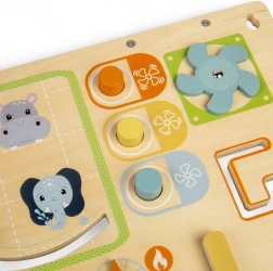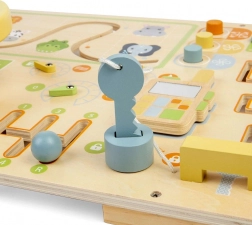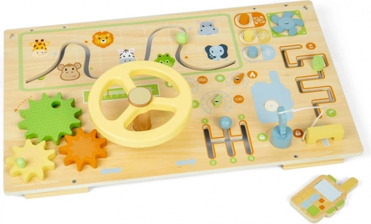 Cette planche d’activités est remplie d’éléments variés, tels que des boutons, un labyrinthe, des engrenages, des plaquettes rotatives et coulissantes. Elle favorise la motricité fine et la coordination œil-main, développe les compétences de résolution de problèmes et la compréhension des relations de cause à effet. Les enfants apprennent en jouant et en s’amusant !