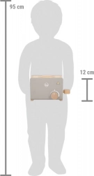 Ce petit grille-pain en bois est l’accessoire idéal pour toute cuisine d’enfants. Il offrira des heures de jeu lors des jeux de rôle de petit chef. Il suffit d’insérer les tranches de pain de mie, de tourner la manivelle et les toasts sont prêts à être servis.