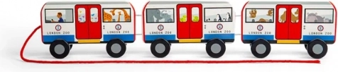 Cette réplique historique du métro de Londres avec trois wagons transporte des animaux au zoo de Londres et deviendra ainsi un super compagnon pour votre enfant lors de ses premières tentatives de marche. Le jouet à tirer est fabriqué en bois durable certifié FSC®, garantissant le respect de l'environnement.